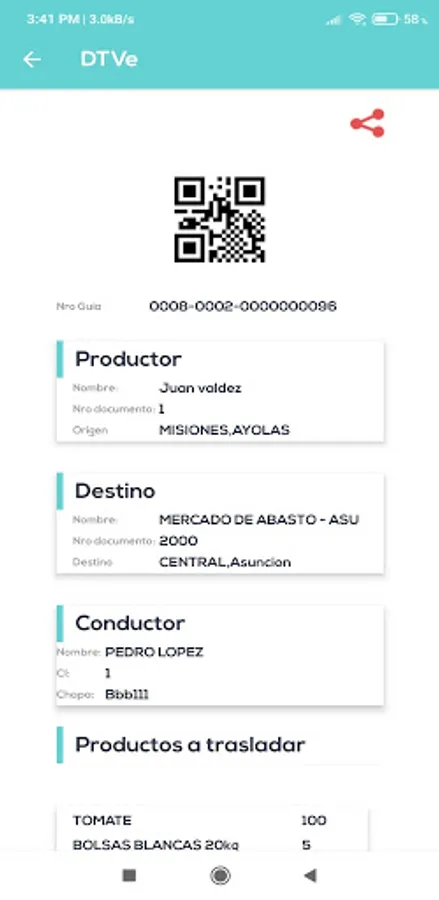 DTVe validator through a QR reader or through the C.I. driver