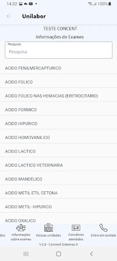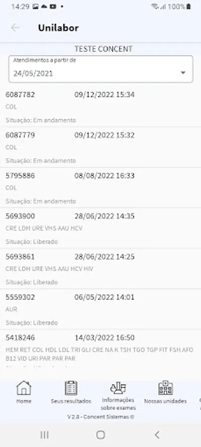 Unilabor Laboratory Application - Cascavel - Paraná, allows its customers and physicians to consult results, exam information, agreements and collection points.