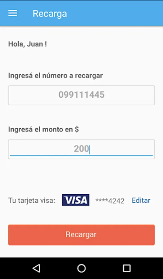 With the application of Recarga.uy you can buy credits for Antel, Movistar and Claro. Enter your phone number, the amount of recharge and select your method of payment. Instantly you will receive a confirmation of your recharge.