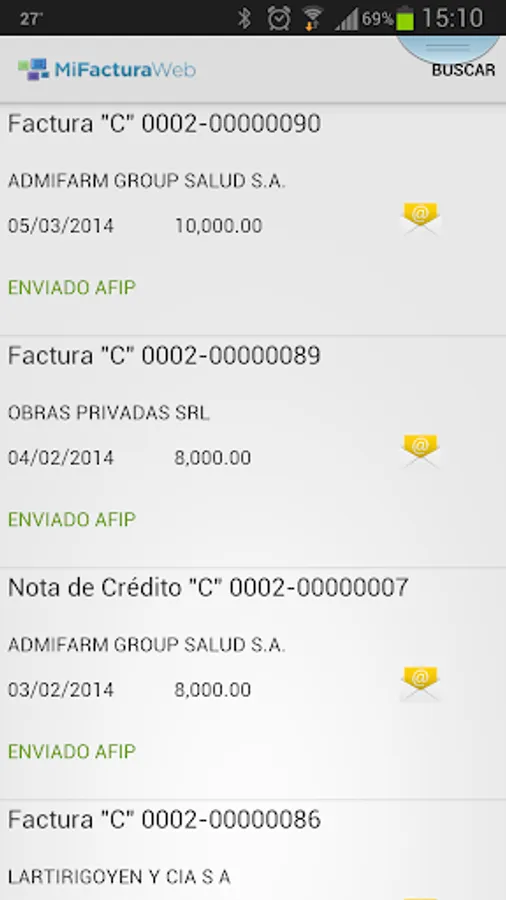 This application operates online and connects to AFIP to validate electronic invoicing. You can send electronic invoices to your customers by e-mail and make receipts from your mobile smartphone.