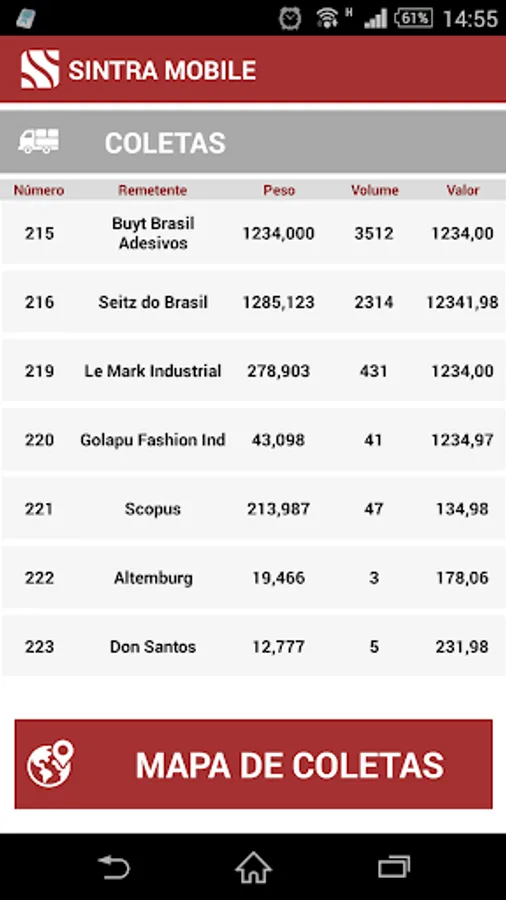In order to improve and generate gains procedures focused on collections and deliveries, the Sintra MOBILE application was made available, and it aims to develop and control the entire process of collections and deliveries of goods made by Vipex carrier to its customers .