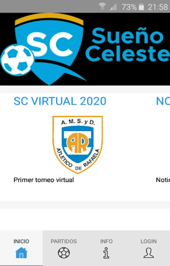 Welcome to SC Virtual 2020! The application to follow minute by minute what happens in the Children's Soccer Tournament "Sueño Celeste Virtual" of Club Atlético Rafaela.