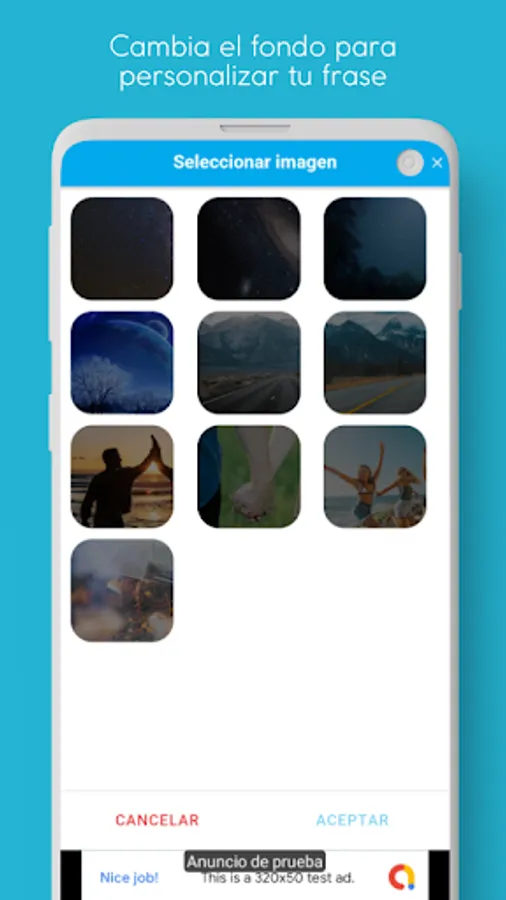 Select a new background image from our gallery to personalize your phrase before sharing it.