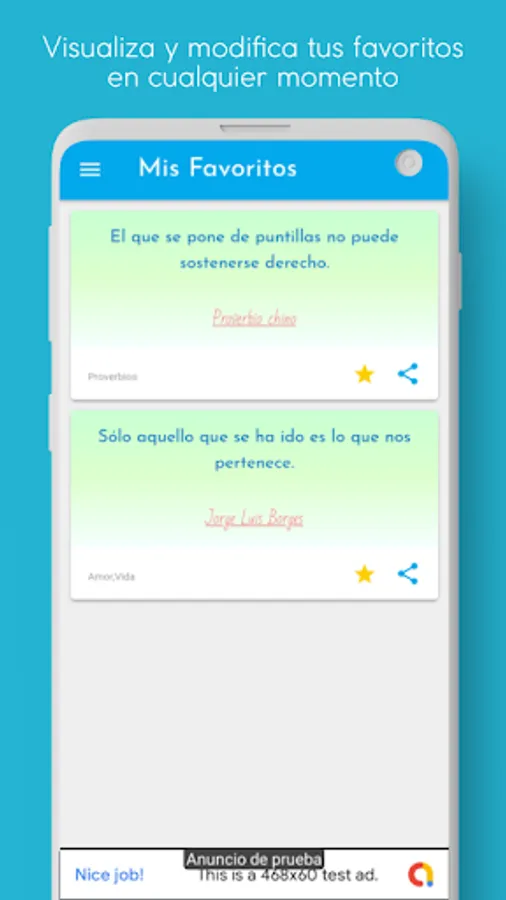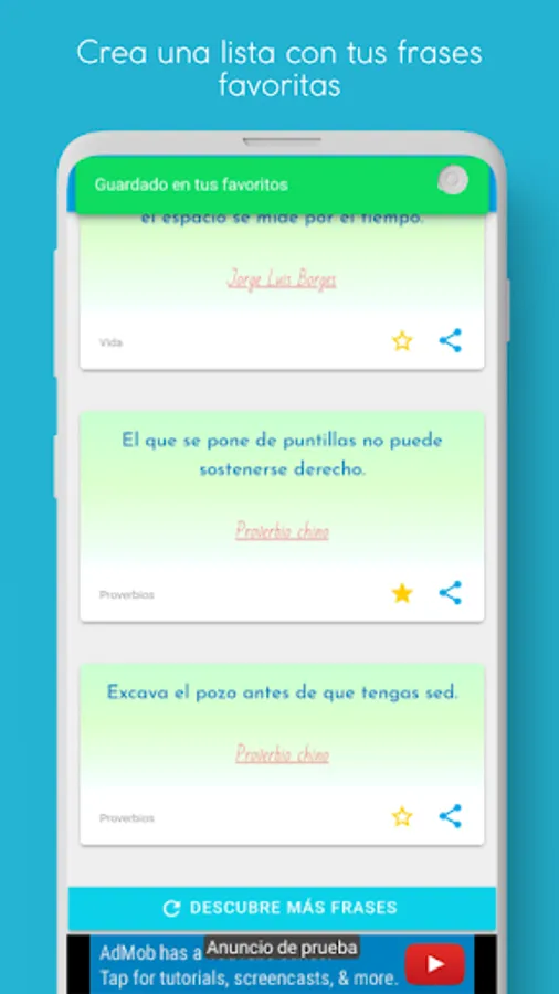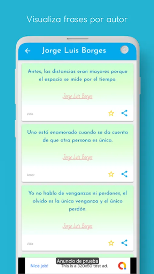 Discover motivational texts, love and friendship or famous personalities, simply update the main screen of the application to get random phrases.