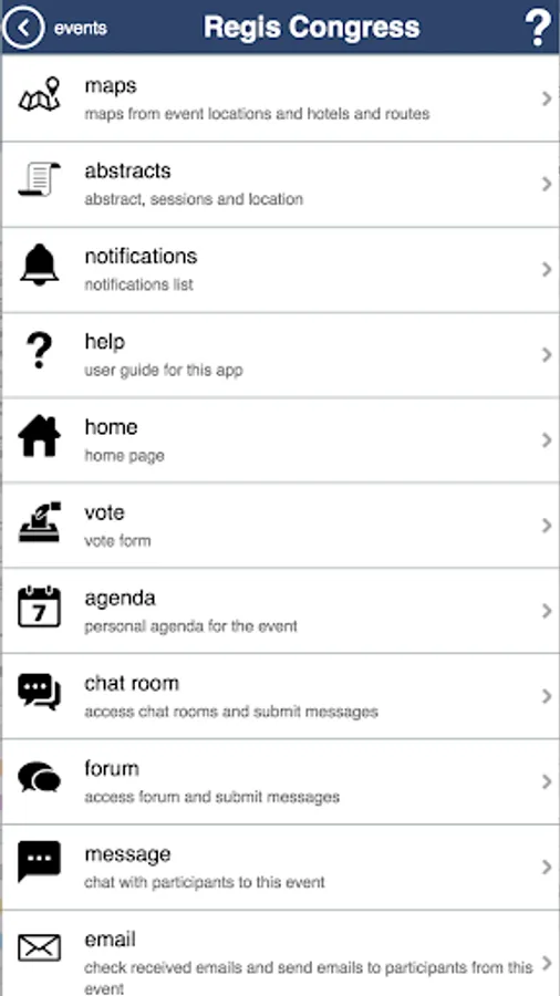 A networking App for events, conferences ,workshops, meetings with internal email, messages, chat rooms, forums abstracts program, information pages, notifications, partnering meetings.
