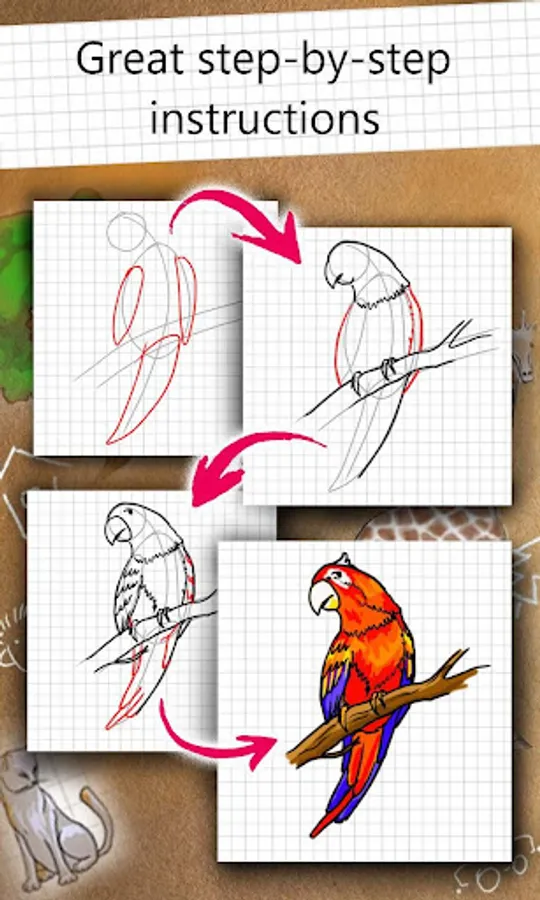 Learn to draw with How to Draw! Like a personal art teacher, it will teach you how to draw dozens of different objects and create amazing pictures.