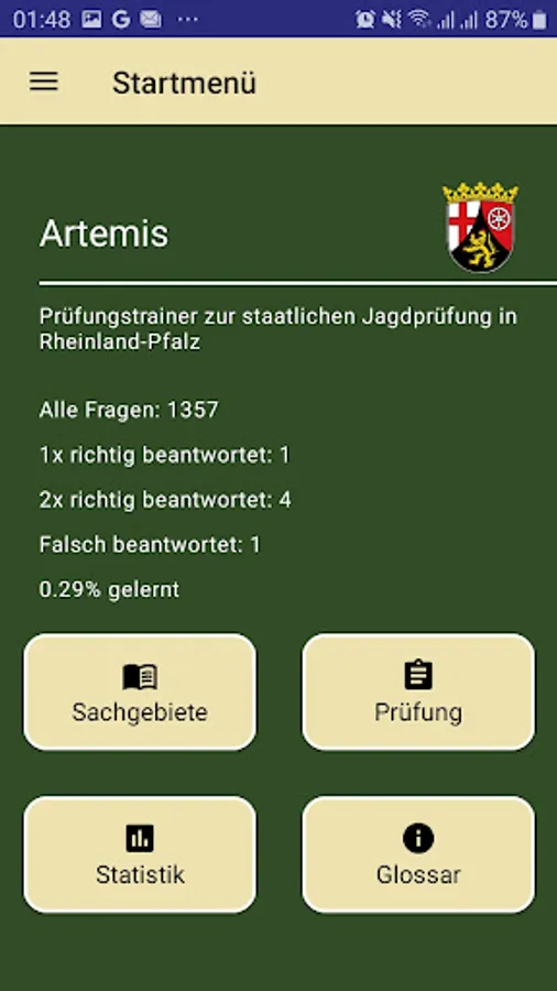 Examination trainer for the state hunting examination in Rhineland-Palatinate