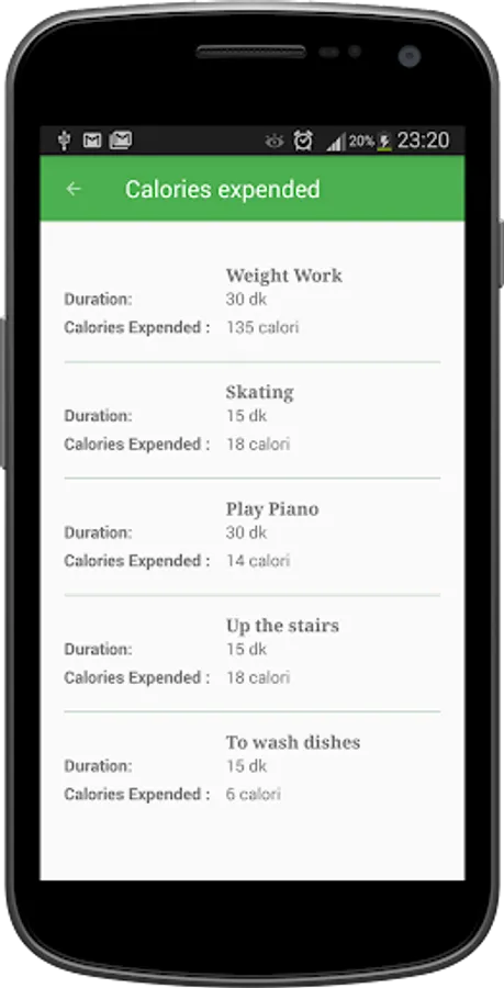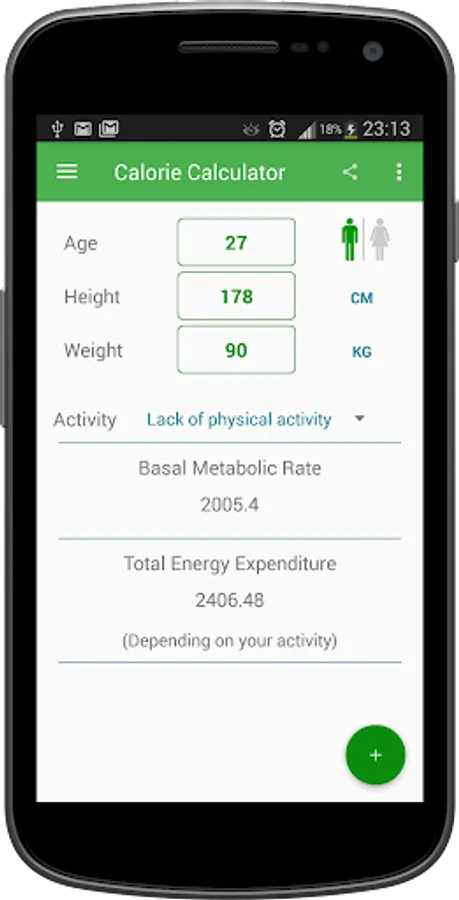 * Manual as age, gender, height, you can calculate your daily caloric needs by entering the density of weight and daily activity.