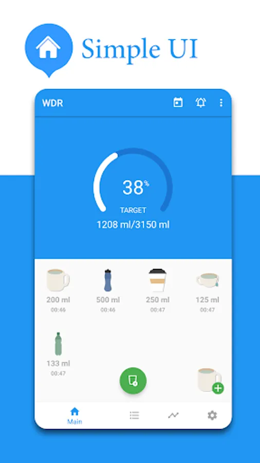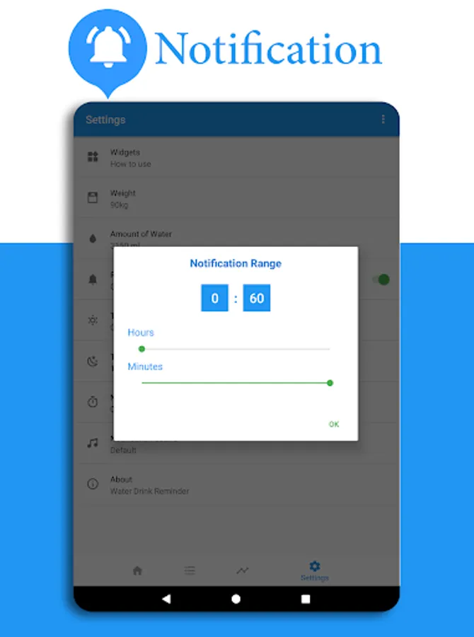 * Notifications that remind you of the amount of water you need to drink during the day.