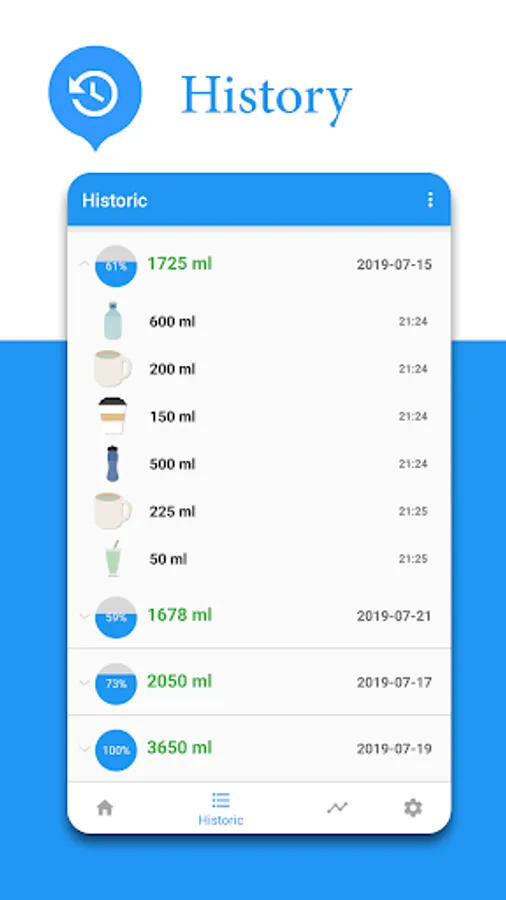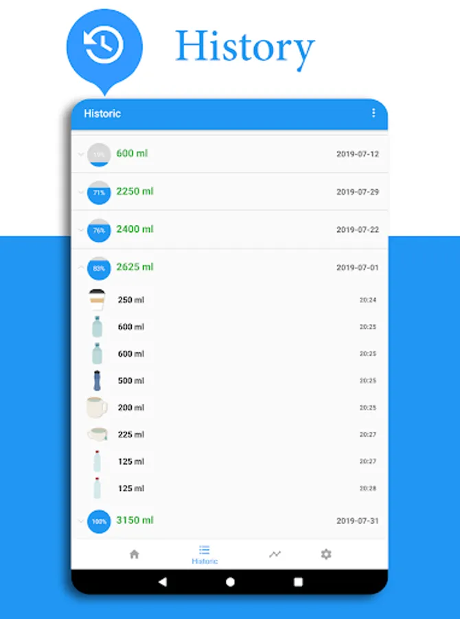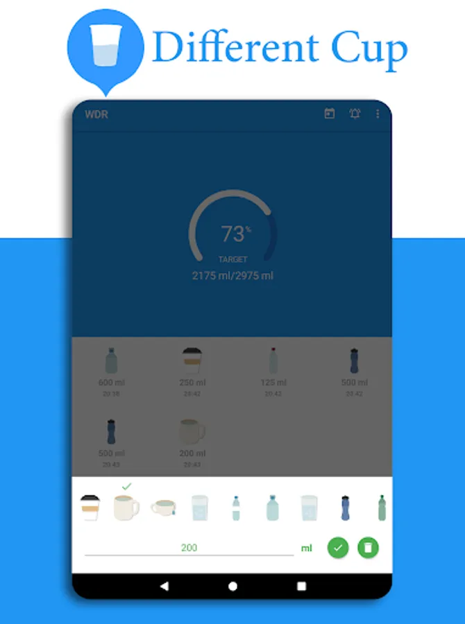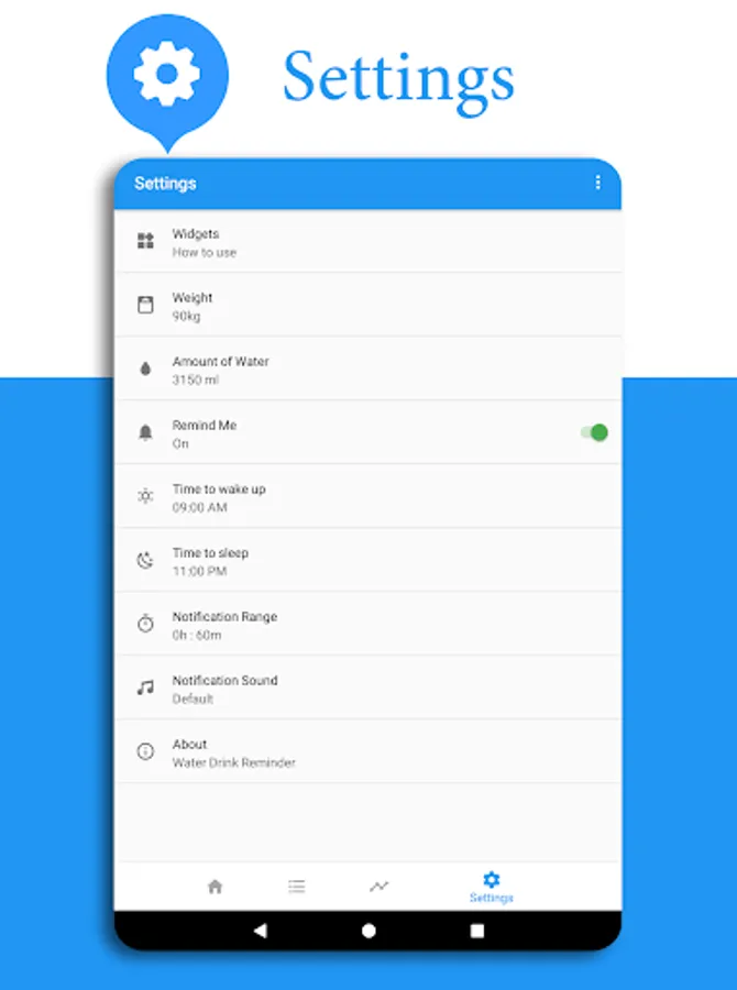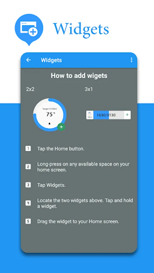 * Using widgets, you can easily follow the water drinking.