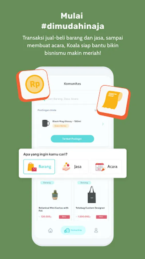 - Bergabung dengan Komunitas Properti yang ada di Koala Living untuk mulai berbisnis, belanja, dan jelajahi berbagai komunitas di dalamnya!