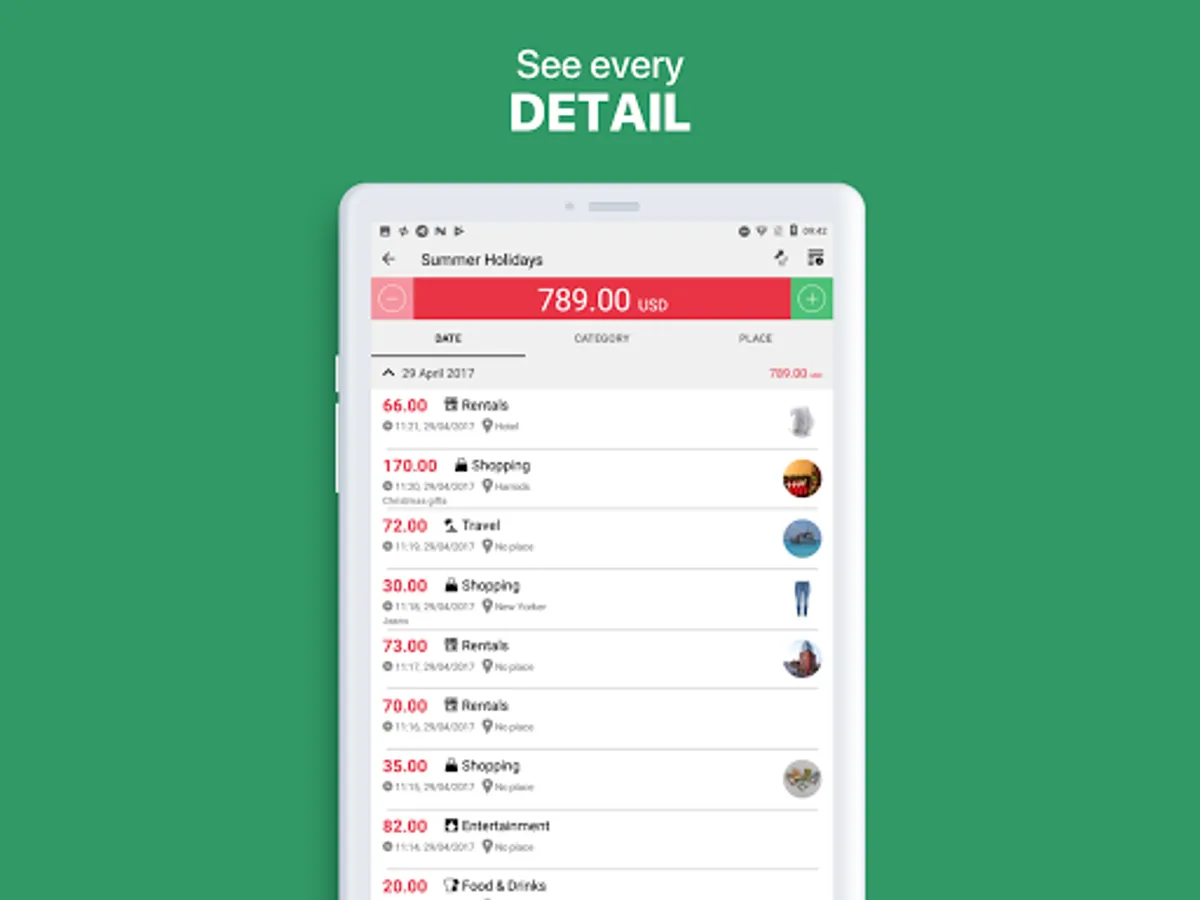 - Change date and time of your entries, add a comment to know exactly when and how you spend your money