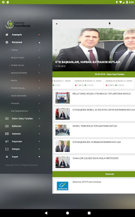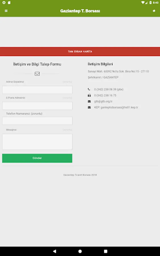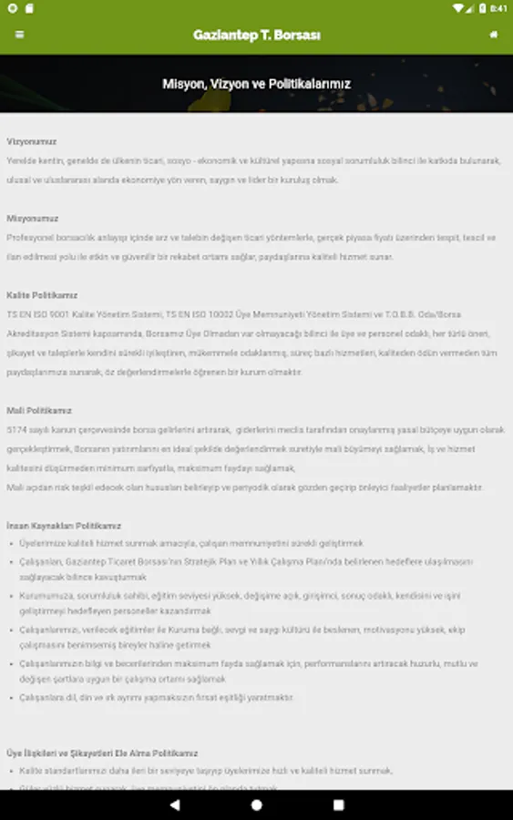 You can get corporate information about Gaziantep Commodity Exchange, read announcements and news about our stock market, follow the transactions on the spot market instantly, you can review previous price information through archives. You can reach your opinions, suggestions and requests about Gaziantep Commodity Exchange. You can look at Gaziantep Commodity Exchange on the map, you can call with one click