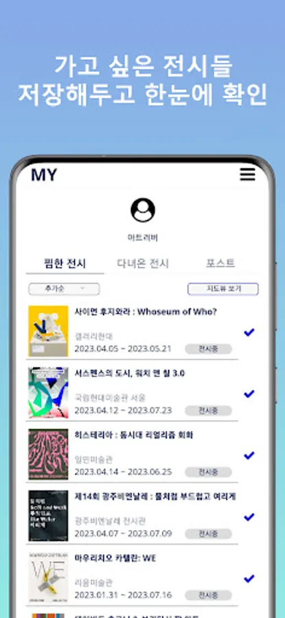 - Saved exhibitions can be checked on My Page, and you can plan your visit by arranging them in the order you want.