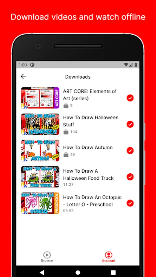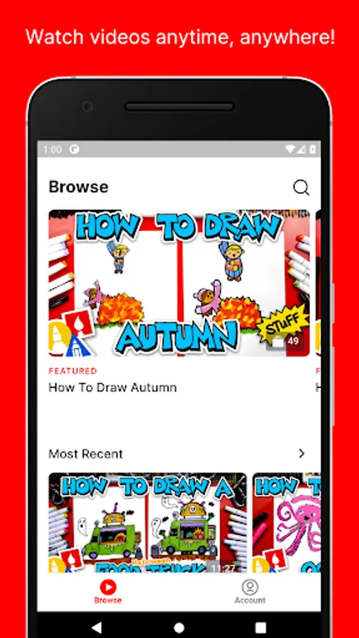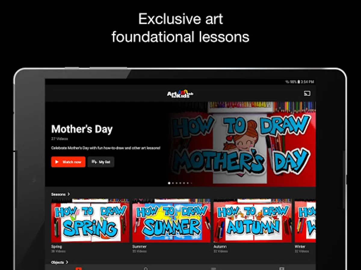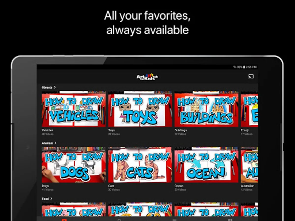 The Art for Kids Hub app provides easy access to to our massive catalog of art lessons and exclusive videos included in our membership subscription on all your devices. You can stream videos on your device, cast videos to other enabled-devices, and download videos to watch offline.
