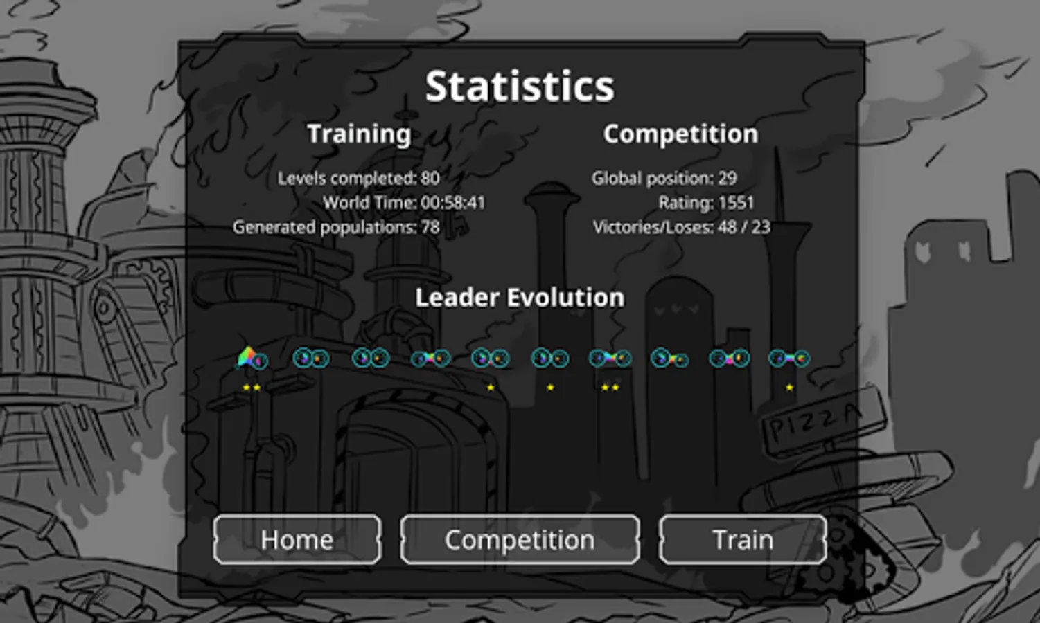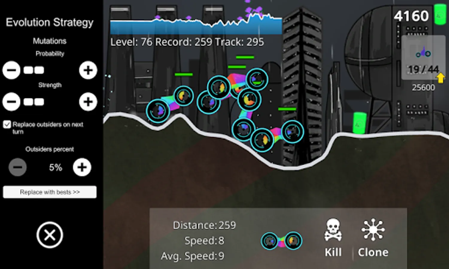 Manage the Evolution to get the perfect car and defeat other users in the competition