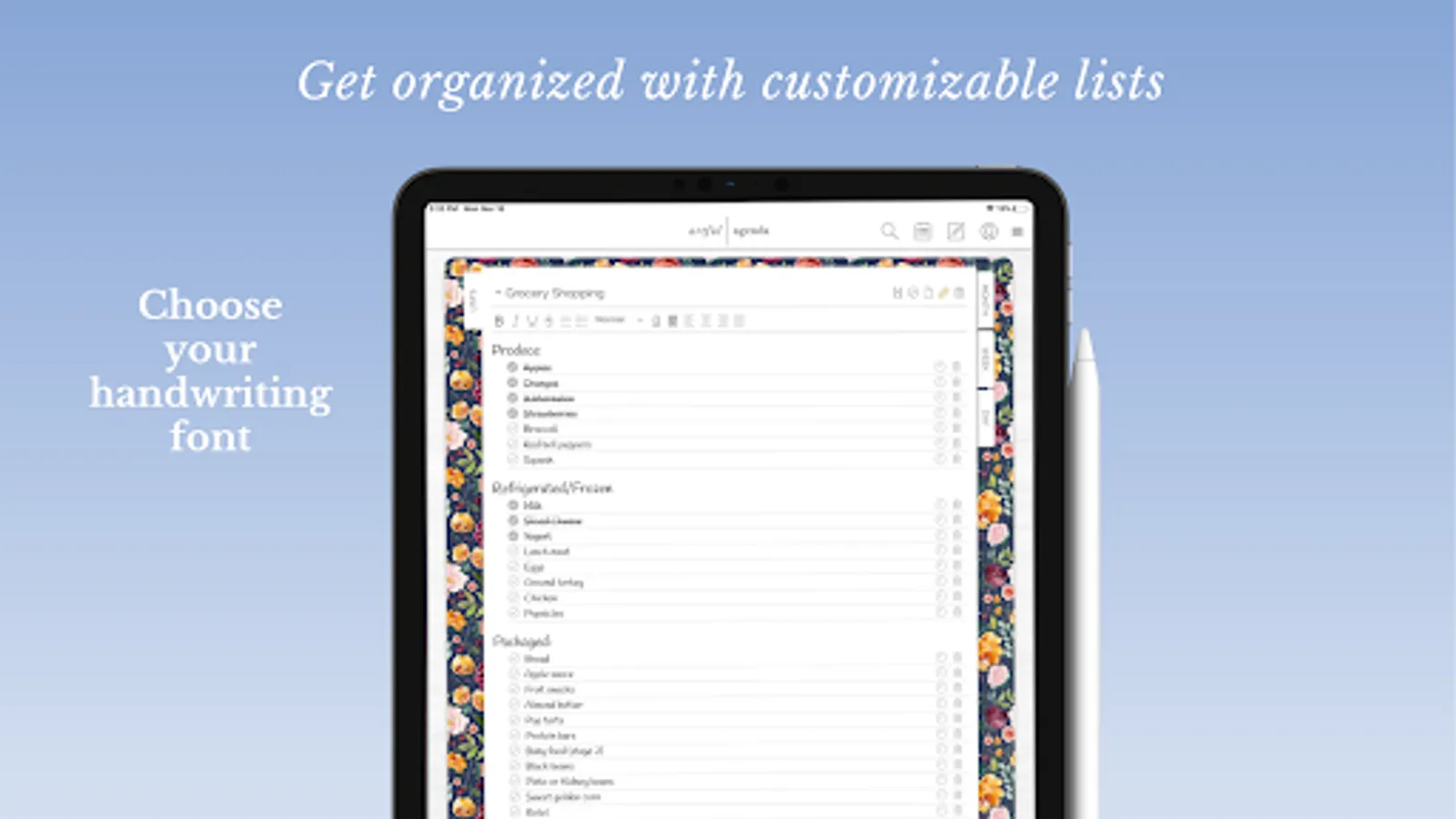 - Keep track of important information with stylish, customizable lists and notes.