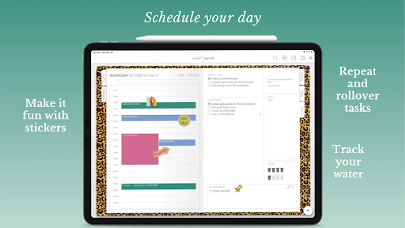 - Increase productivity with repeat, rollover, and “snooze” task functions plus the ability to assign tasks to certain days