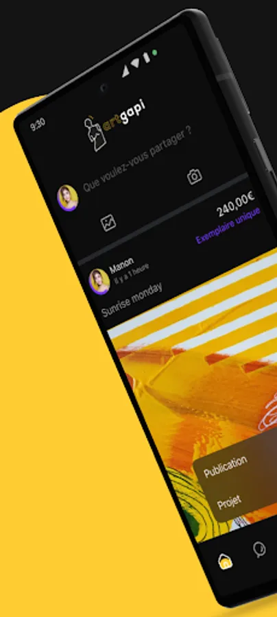 Artists, your favorite social network is here! Getting visibility has never been easier! Save yourself the maintenance costs of a website or traditional social networks that are not suitable for the sale of works of art online. Sell easily and securely thanks to ARTGAPI, and benefit from the social network and its advantages. Exchange with other users who are artistic actors. Like, comment and share the works of your favorite artists! With our transport partners, your work can be safely transported to its recipient. Amateurs, professionals, with or without an academic background, save yourself the relationship and visibility work necessary for your artistic career. No membership fees, immediate and without obligation! Monthly plans are offered instead of sales commissions, and if you don't want to sign up for a subscription, we offer only 10% commission on each sale!