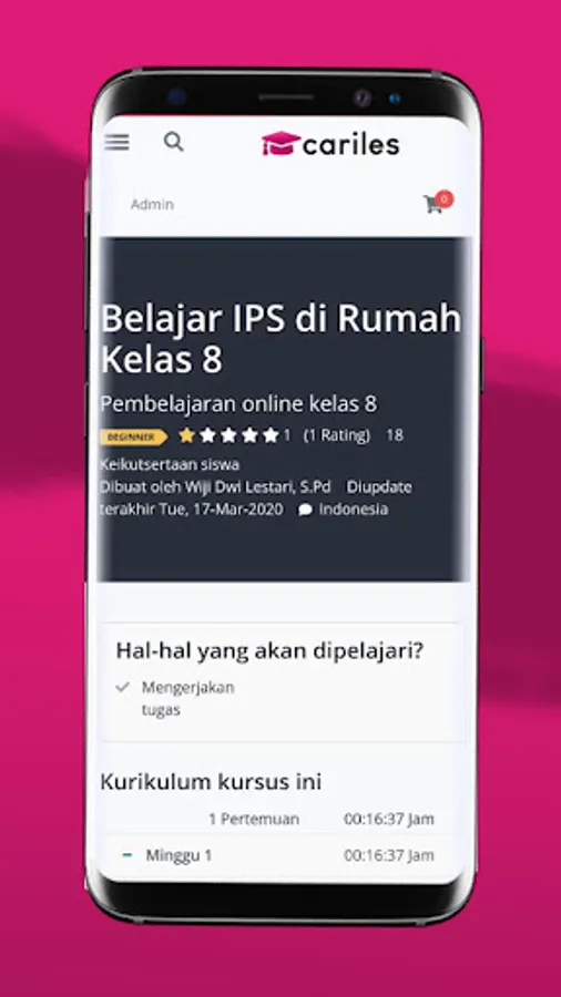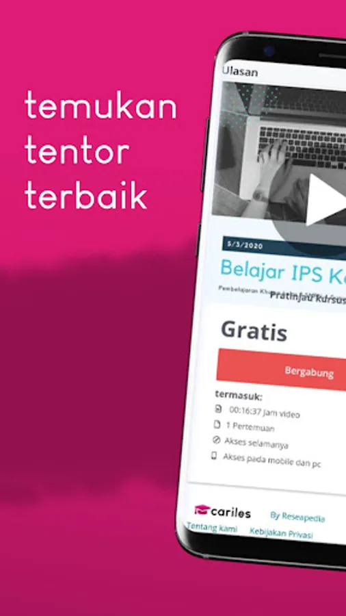 Cariles is a learning media application. Someone can act as a student and as a tutor of a course / tutoring.