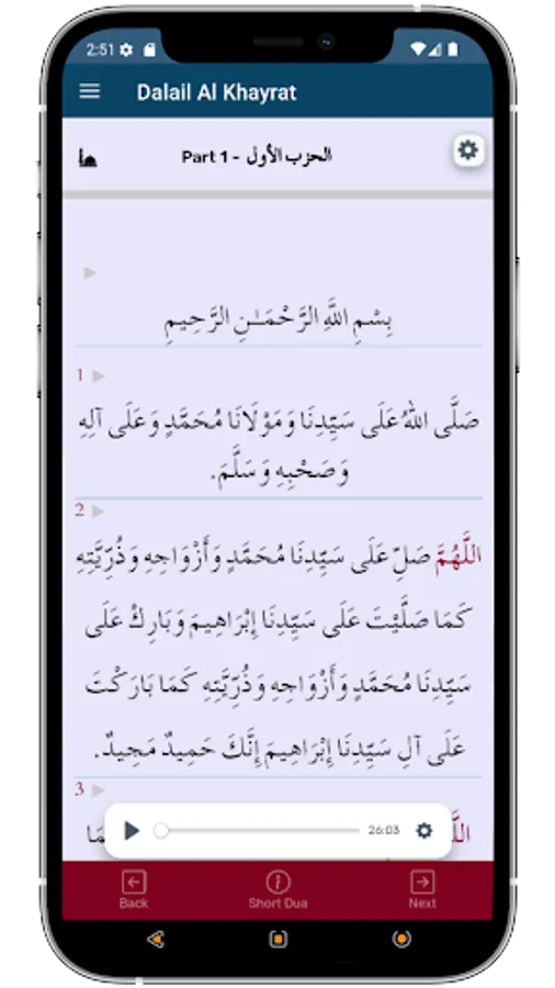 Thousand of apps of Dalail ul Khairat are available in the world, but in this app all the Hizbs (Sections) are arranged in serial order of the weekday so that readers can recite easily without any difficulty. There is also an audio recitation which is followed word by word to facilitate the reader.