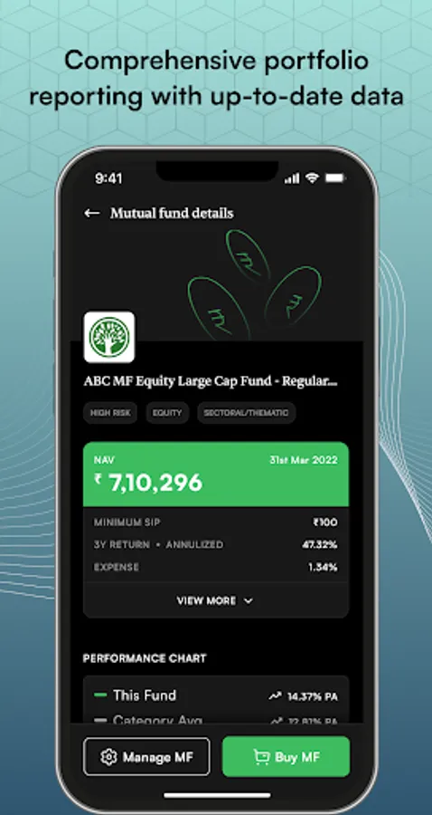 Our app is designed to enhance your mutual fund experience. Seamlessly manage your MF portfolio, view all transactions and SIPs, and stay informed with comprehensive factsheets. Easily search for various baskets and compare different mutual funds to make well-informed investment decisions. Complete the entire transaction journey within the app without needing to authenticate via email. Activate mandate authentication within just 2 minutes, giving you full control over your investments.