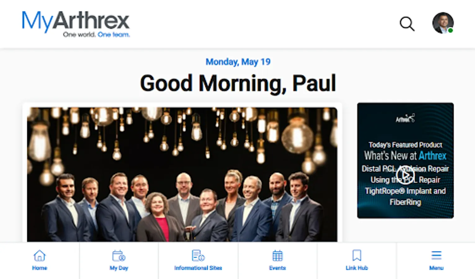 The MyArthrex app makes Arthrex’s global intranet accessible on the go, allowing employees to stay informed with local, regional and global Arthrex news, events, resources and more anytime, from anywhere.