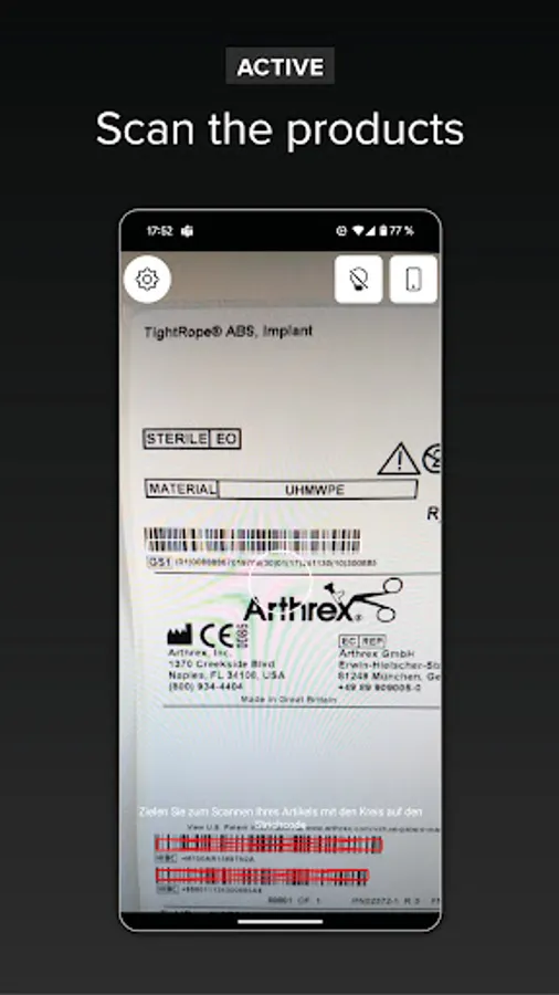 The Arthrex ScanApp turns your mobile device into a barcode scanner for use with the Arthrex m.a.r.s. web app.
