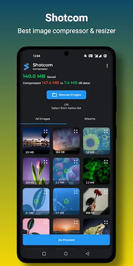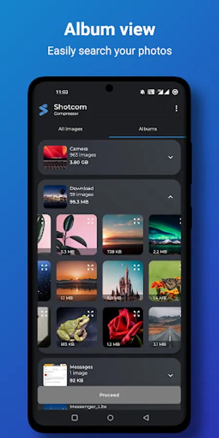 Shotcom also features an album view that makes it easy to search and manage your images. You can easily sort your images by date, name, or size, and preview them before compressing. This makes it easy to find the images you want to compress and save time.