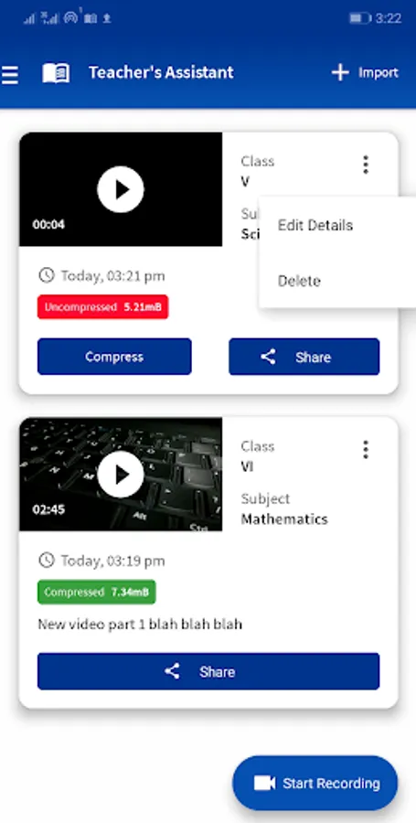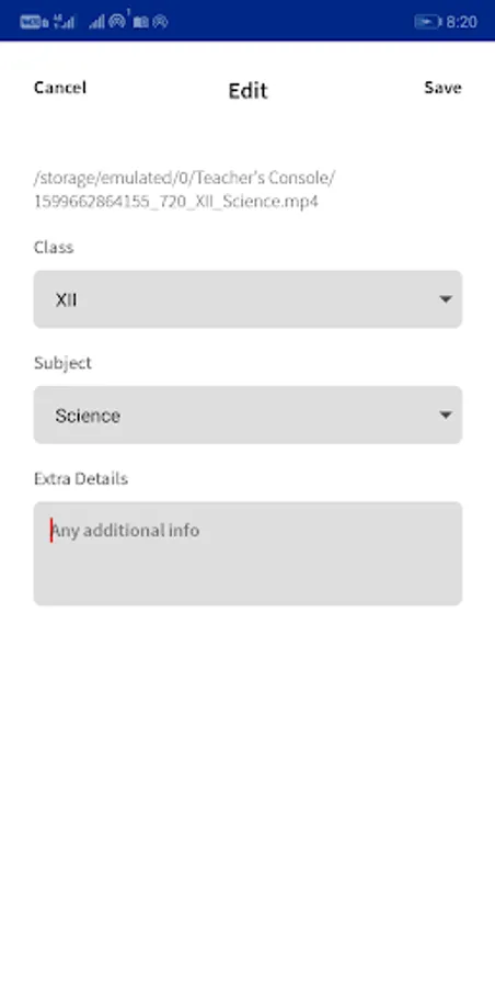Add details to your videos like class, subject and some additional information for your quick reference.