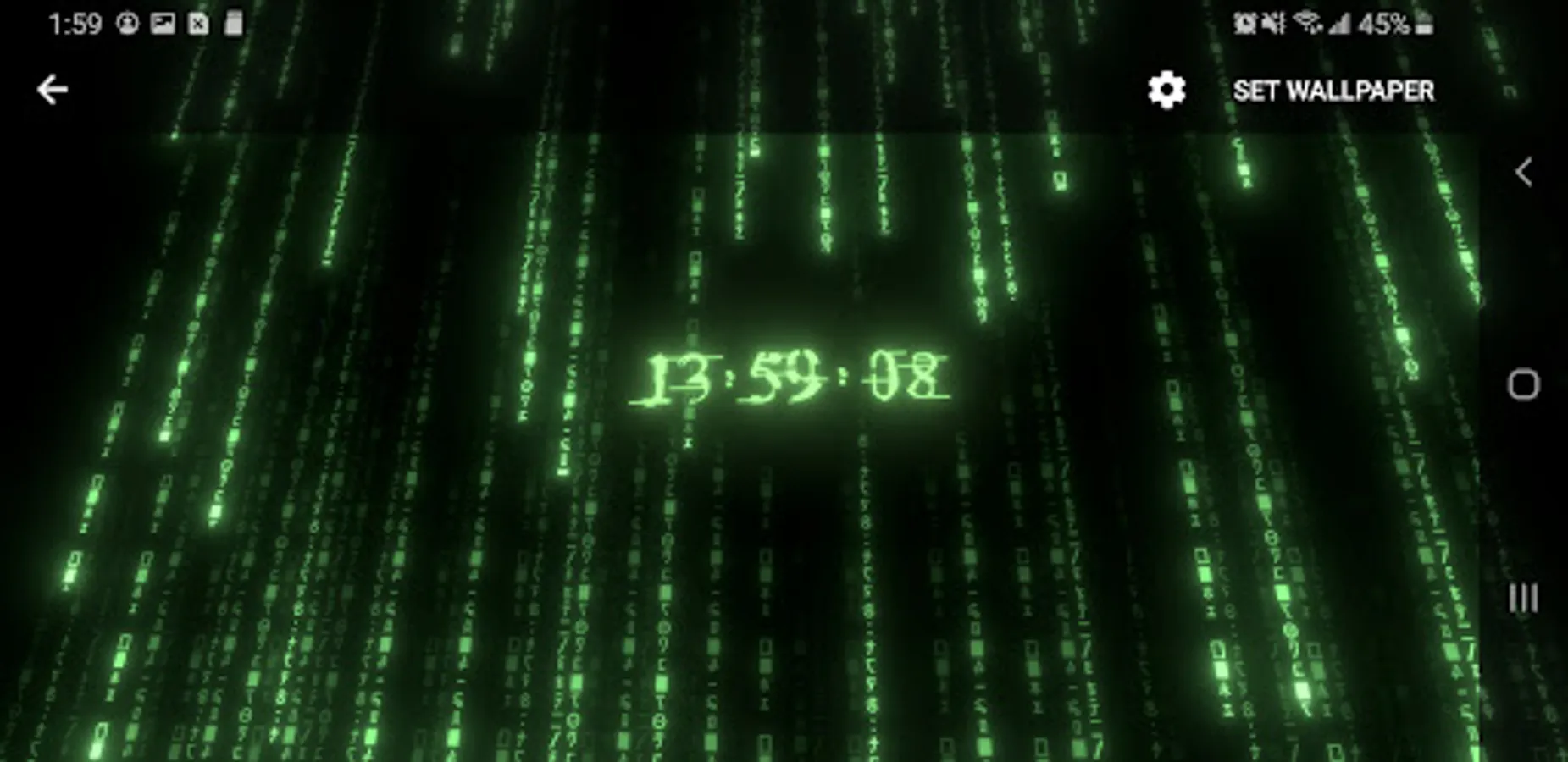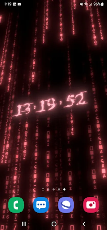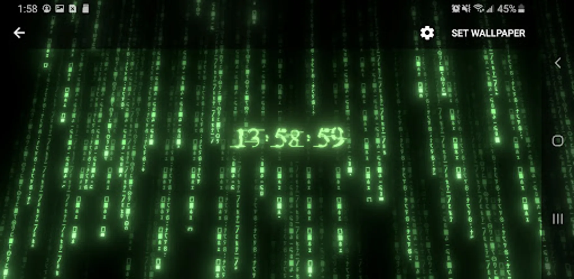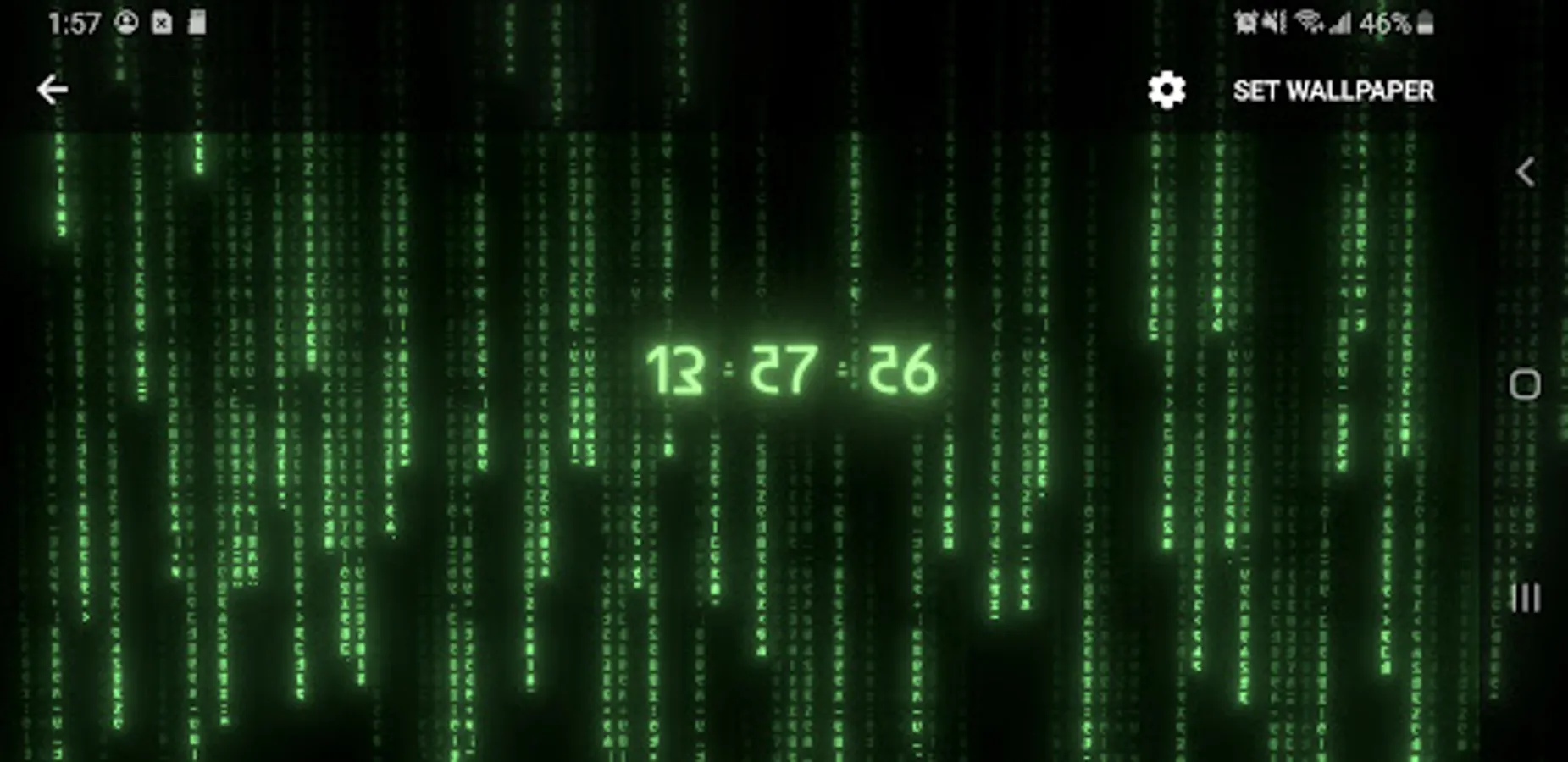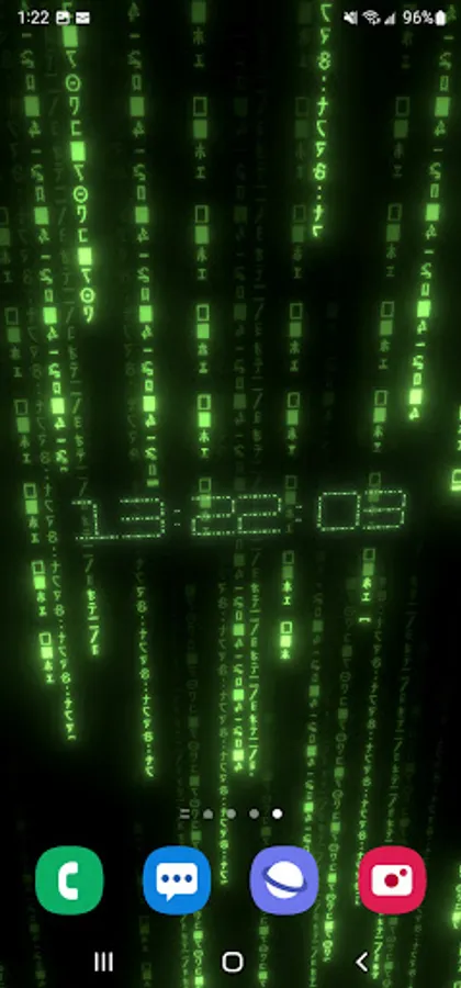 True 3D animated parallax live wallpaper rendered with 6 types of matrix digital neon clocks with adjustable color – plus 7 types of background matrix code effects.