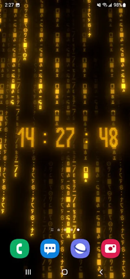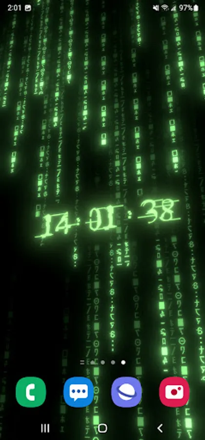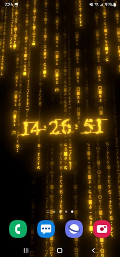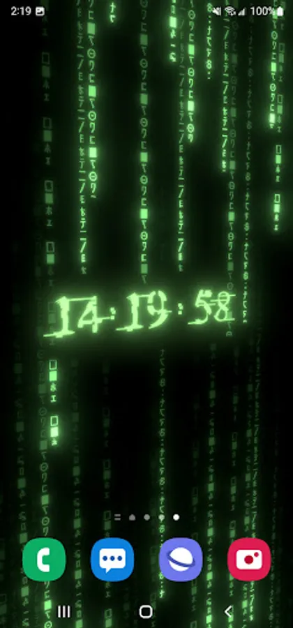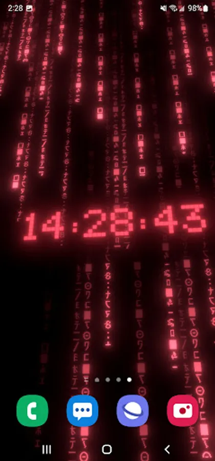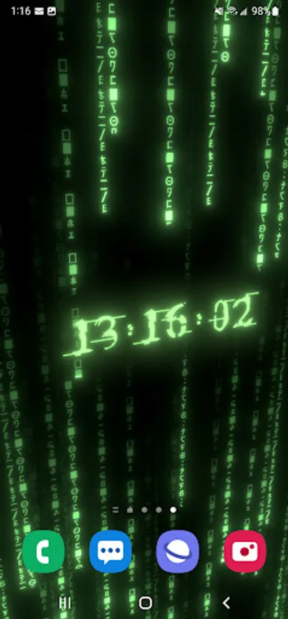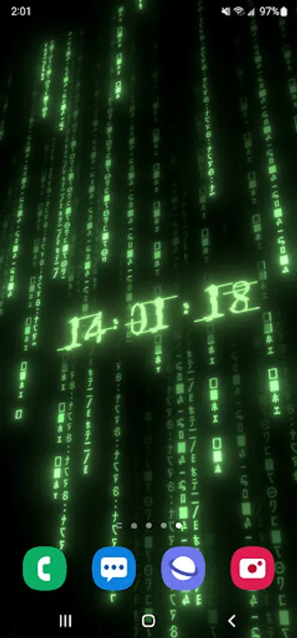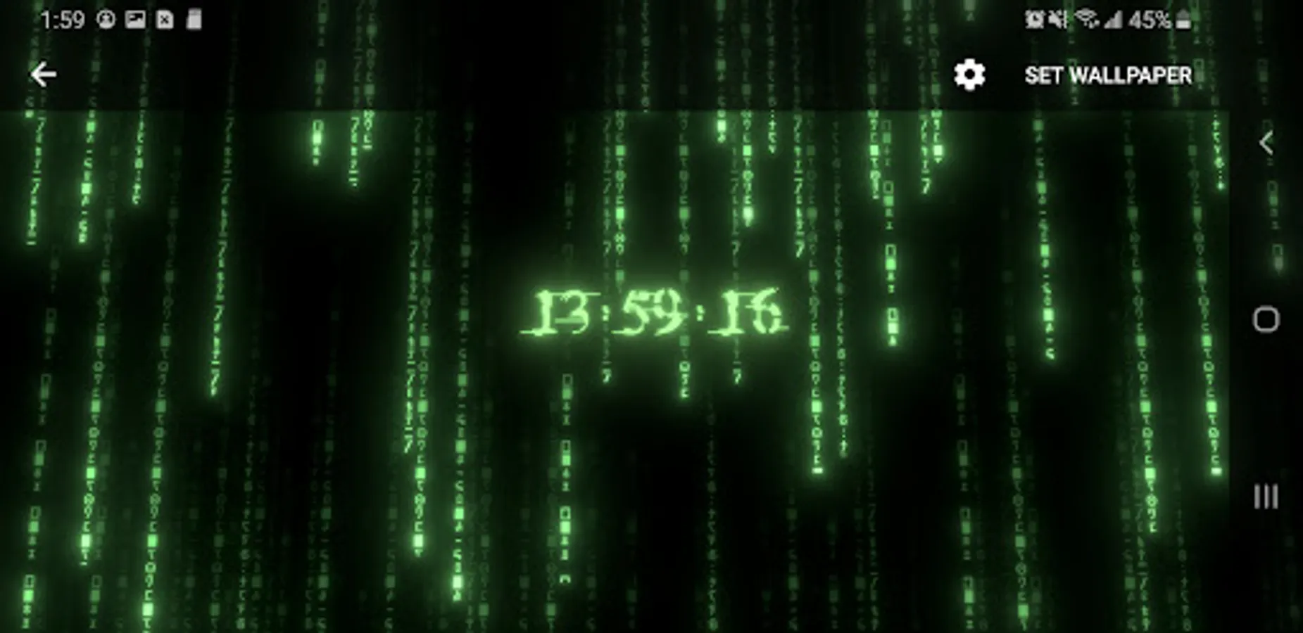 True 3D animated parallax live wallpaper rendered with 6 types of matrix digital neon clocks with adjustable color – plus 7 types of background matrix code effects.