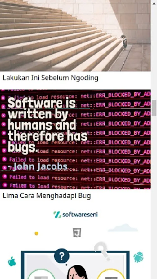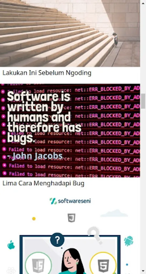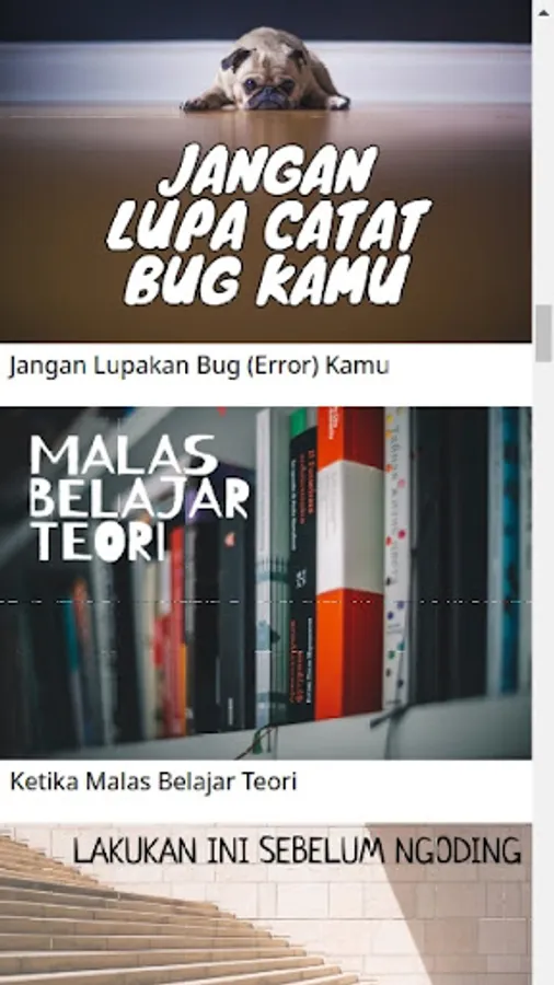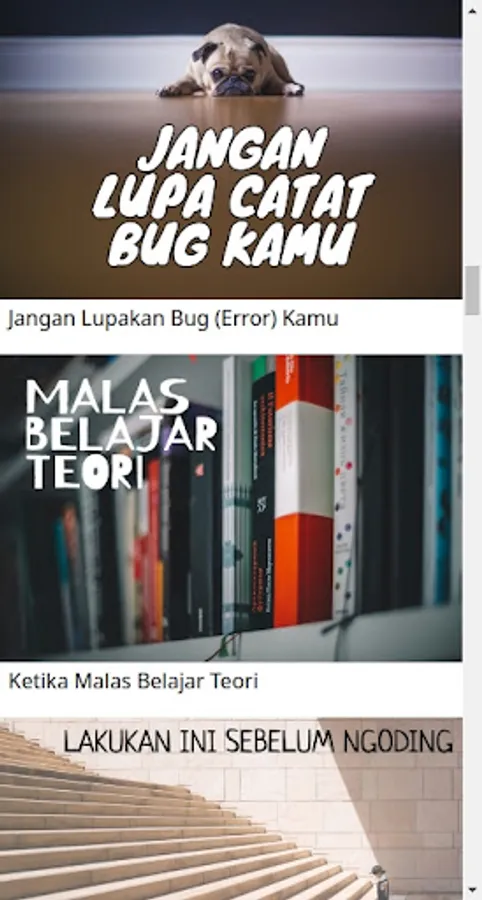 This application is a collection of articles from various programming blogs. What appears in this application is only the title, post thumbnail, and post link. So, I don't steal the content in this application. I'm just attaching the source. When clicked, the user will be directed to the website that owns the content.