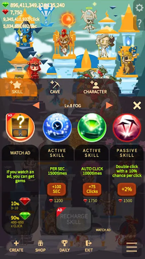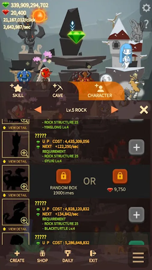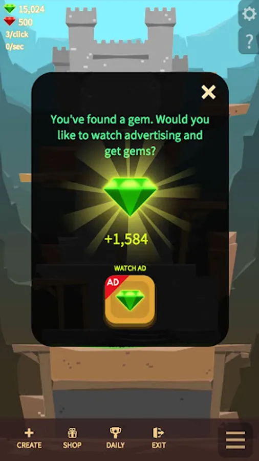 "The Cave" is a tap idle game. Find and collect 45 different structures and 188 characters across 9 different caves. Tap the screen and use your skills to get gems to play!