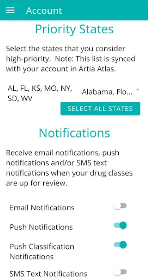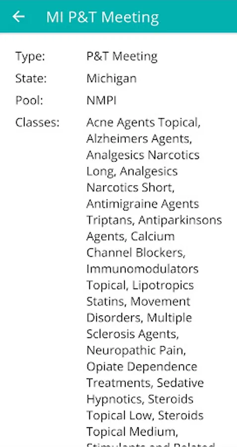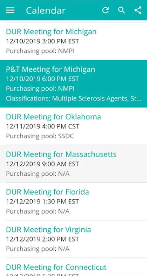 This app is particularly useful for pharmaceutical manufacturer account managers that are responsible for Fee-For-Service Medicaid. Other highlights include the ability to set priority states and drug classes, and to receive push notifications when those drug classes are up for review in each state. Meeting information can also be saved to your device's calendar.