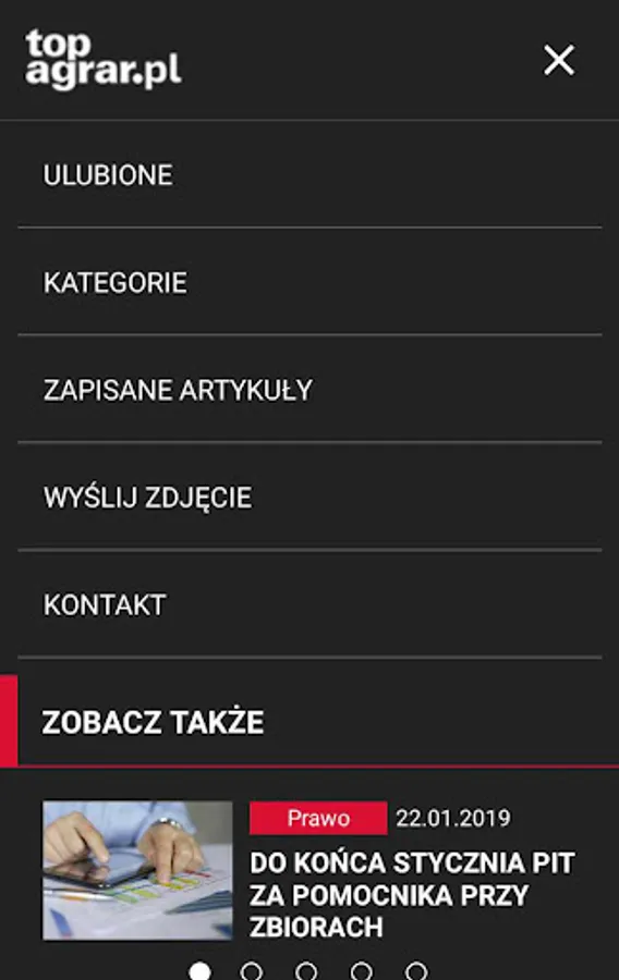 1. Simple operation and navigation - thanks to the application you can even more comfortably read articles from topagrar.pl, browse multimedia content and take part in organized competitions.
