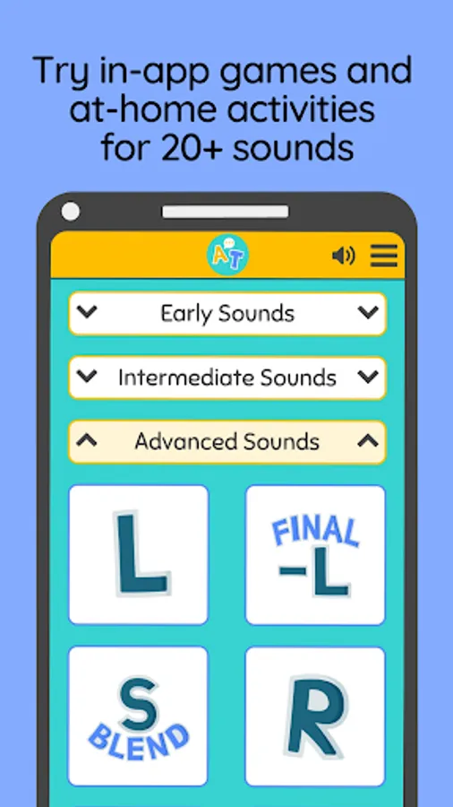 Articulation Teacher includes at home articulation activities to do with your child outside of the app as well as games to play with your child in the app. All suggestions are evidence-based and research-backed. Let's dive into what each sound set includes: