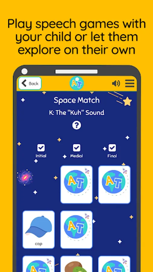 Space Match: play this out-of-this-world memory game, saying each word as you flip over each card, to work on both articulation and cognitive skills.