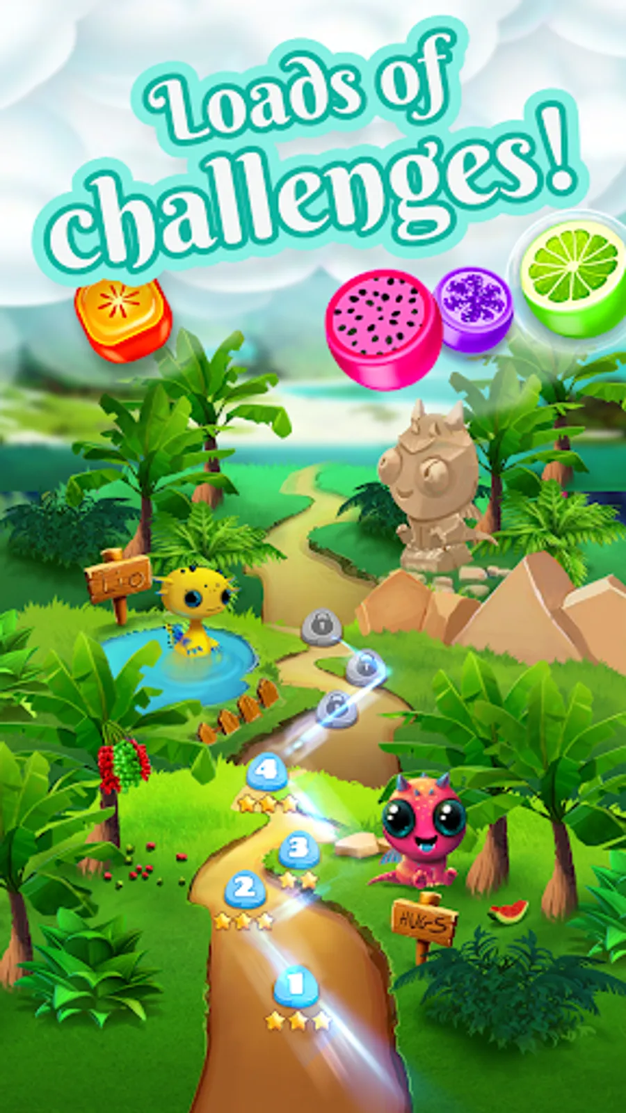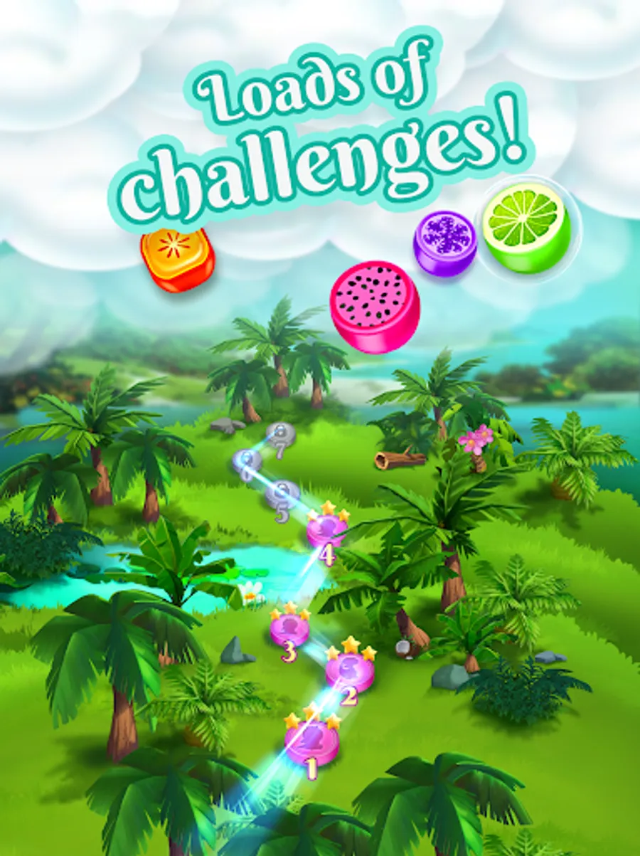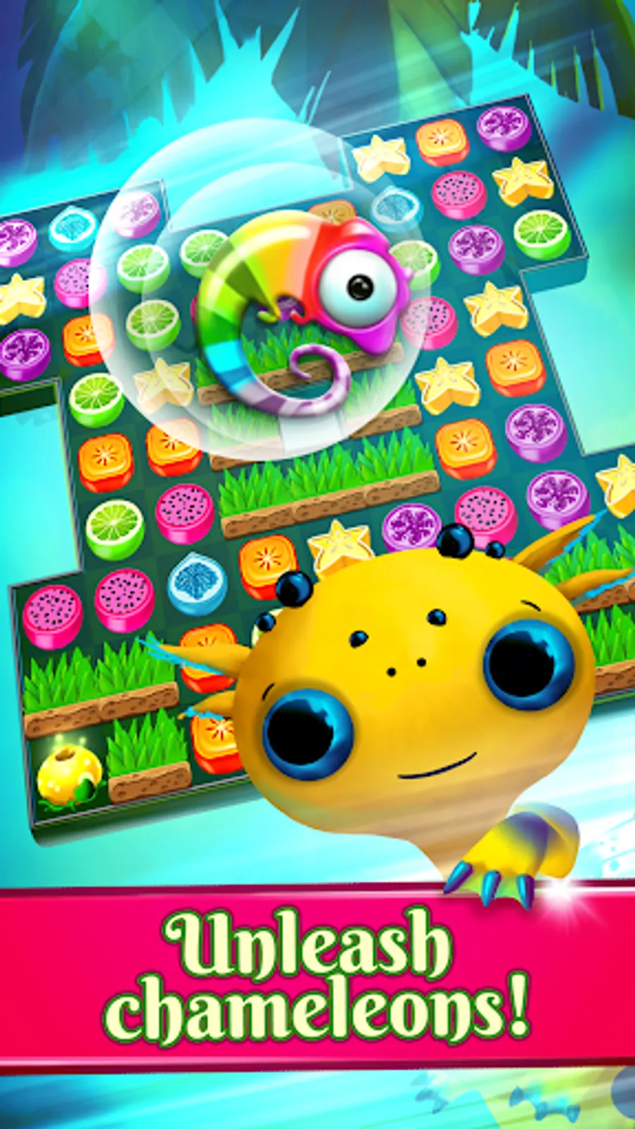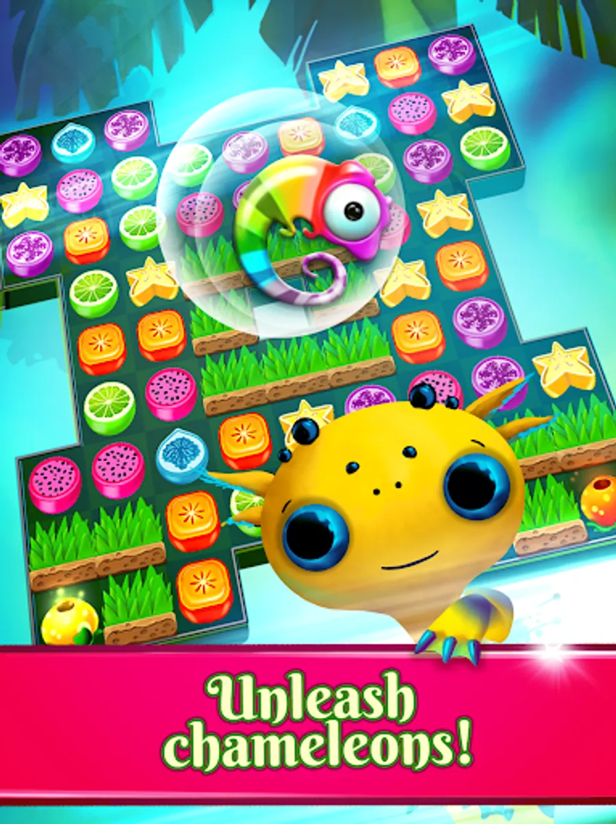 There’s no candies, cakes or cookies in this game! Just a colorful mix of healthy and mellow fruits! Swap and squash hundreds of citruses through a world full of challenging levels. Create powerful combos with the help of tiny chameleons and gleaming fireflies. Experience your own tropical island saga and help all the sweet dragons in this free puzzle adventure.