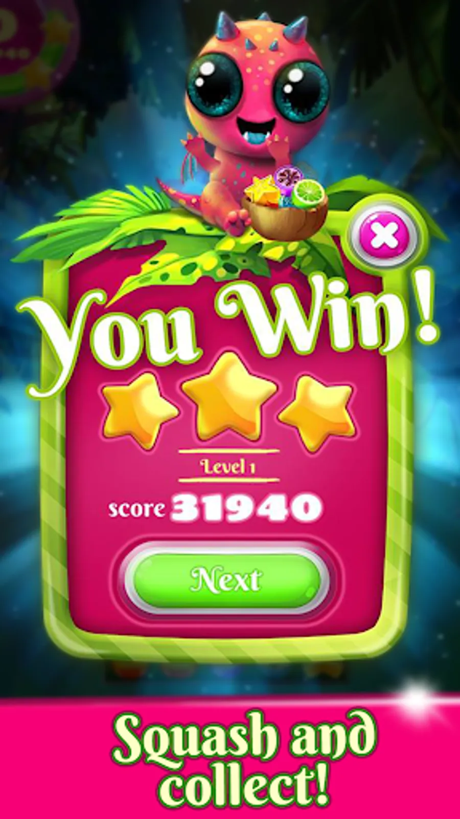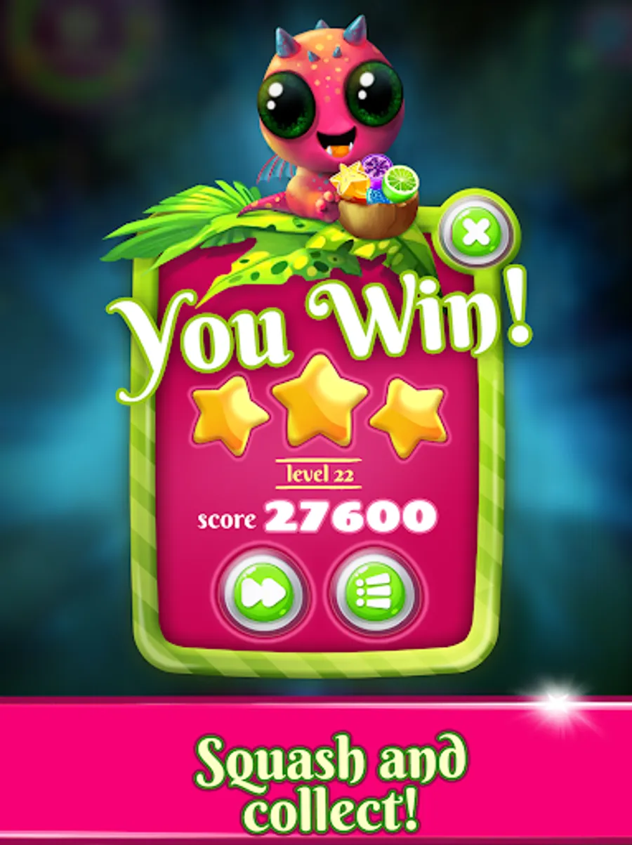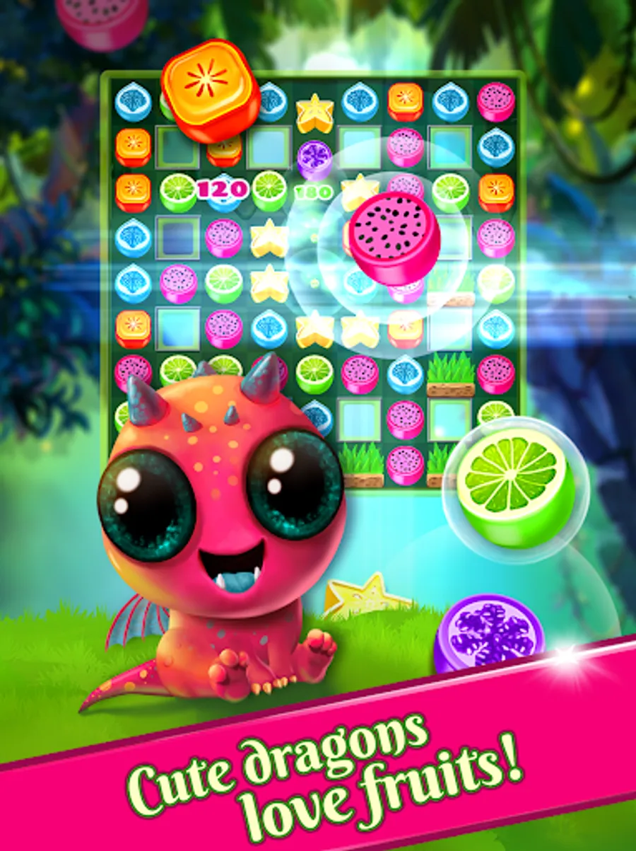Squash and collect fruits before these cute little dragons become heartbroken. Baby dragons love delicious sweet fruits and will enjoy a yummy treat every time you match-3 of them.