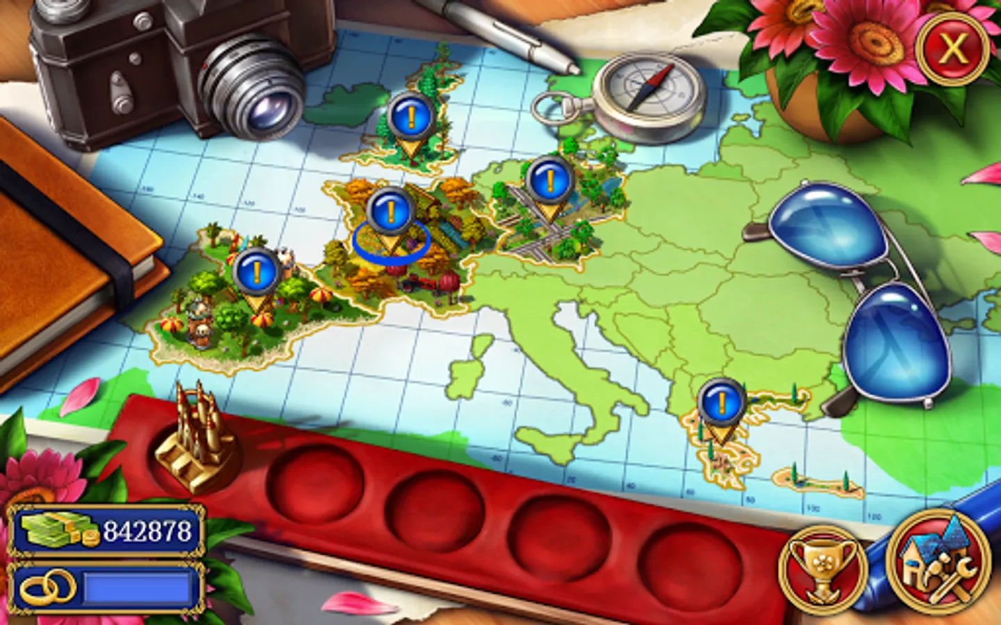 Embark on a journey to the most famous cities of the Old Continent. With 60 hand-painted levels, you will discover beautiful landscapes in various seasons. During your adventure, you will visit cities such as Paris, Barcelona, London, Athens and Hamburg.