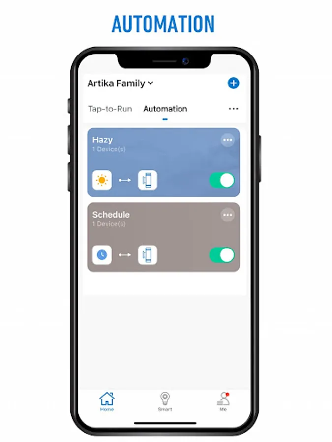 The Artika app puts you in control. Group devices together by room or zone. Create scenes that welcome you home, set the ambiance for movie night, or put the house to sleep at bedtime. Schedule your devices to turn on/off based on temperature, geolocation and time. Compatible with Amazon Echo and Google Home voice control, it can be as simple as saying it. With the widget feature, no need to boot the app your devices and/or your favorite scenarios are accessible directly from the home page.