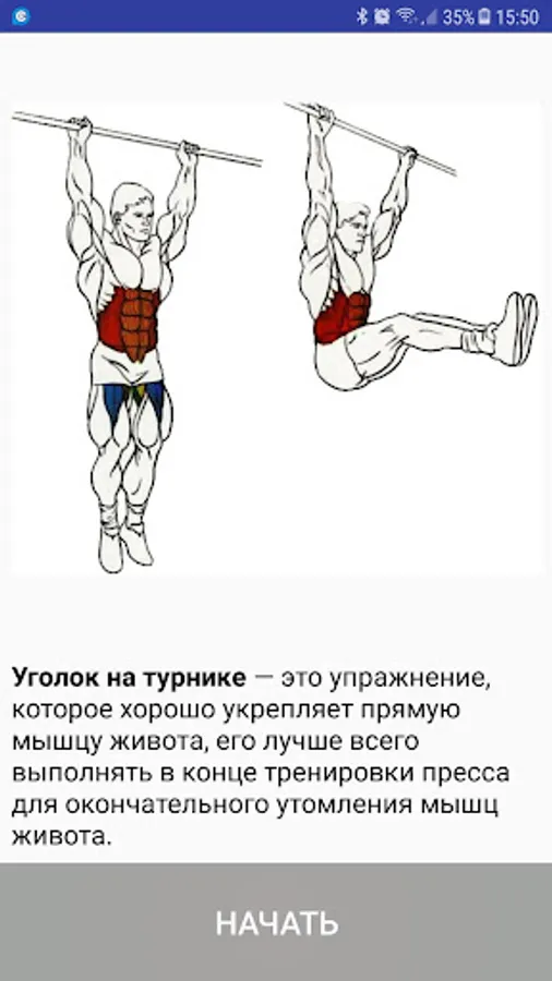 Corner on the bar - it is an exercise that is well strengthens the rectus abdominis muscle, it is best done at the end of the press workout for the final exhaustion of the abdominal muscles.