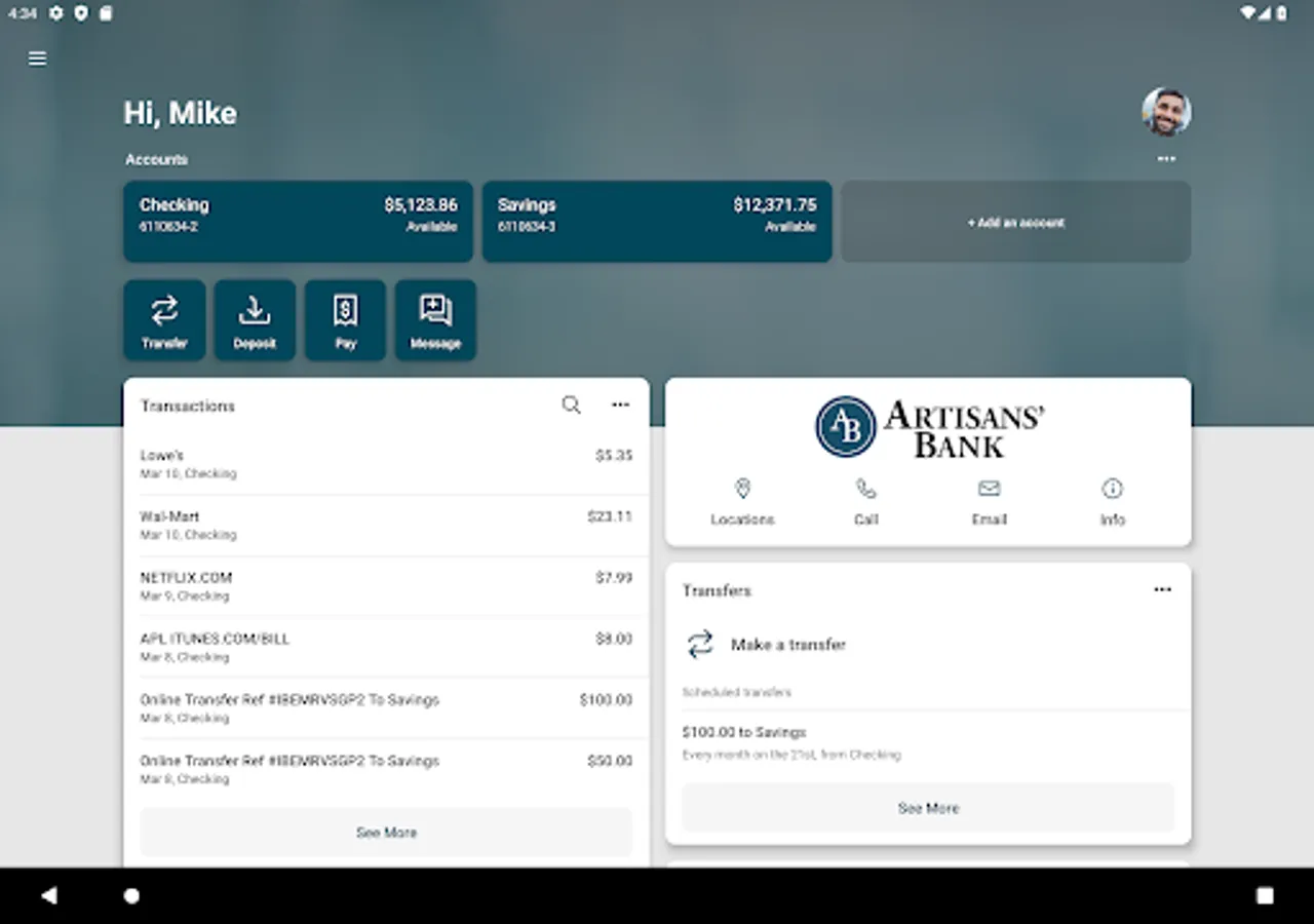 Here’s what you can do with the Artisans' Bank Mobile App:
