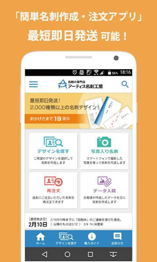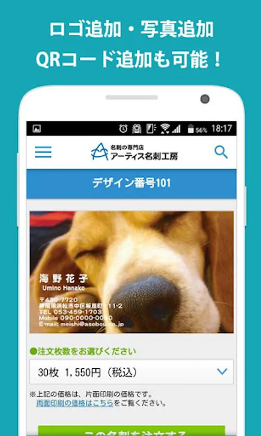 It is an application that business card specializes in business card creation and business card printing has made it easy to order from the smartphone.
