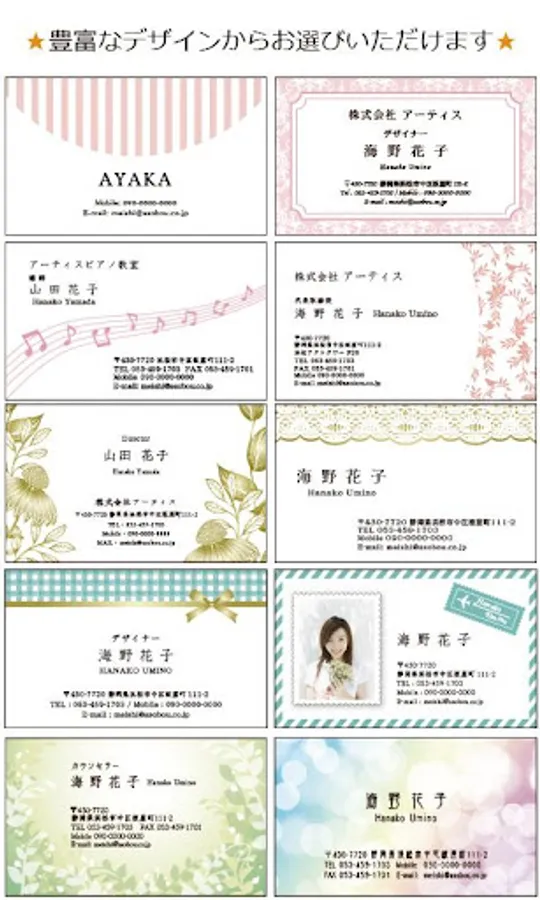 Business card design, because it is that it is made to your personality, there are goods, and, we have selected carefully and adopted the original design that can not be forgotten once seen.
