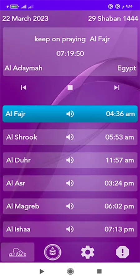 ► Azan program to calculate prayer times accurately according to your current location automatically and alert you to the call to prayer to remind you of the prayer time wherever you are.
