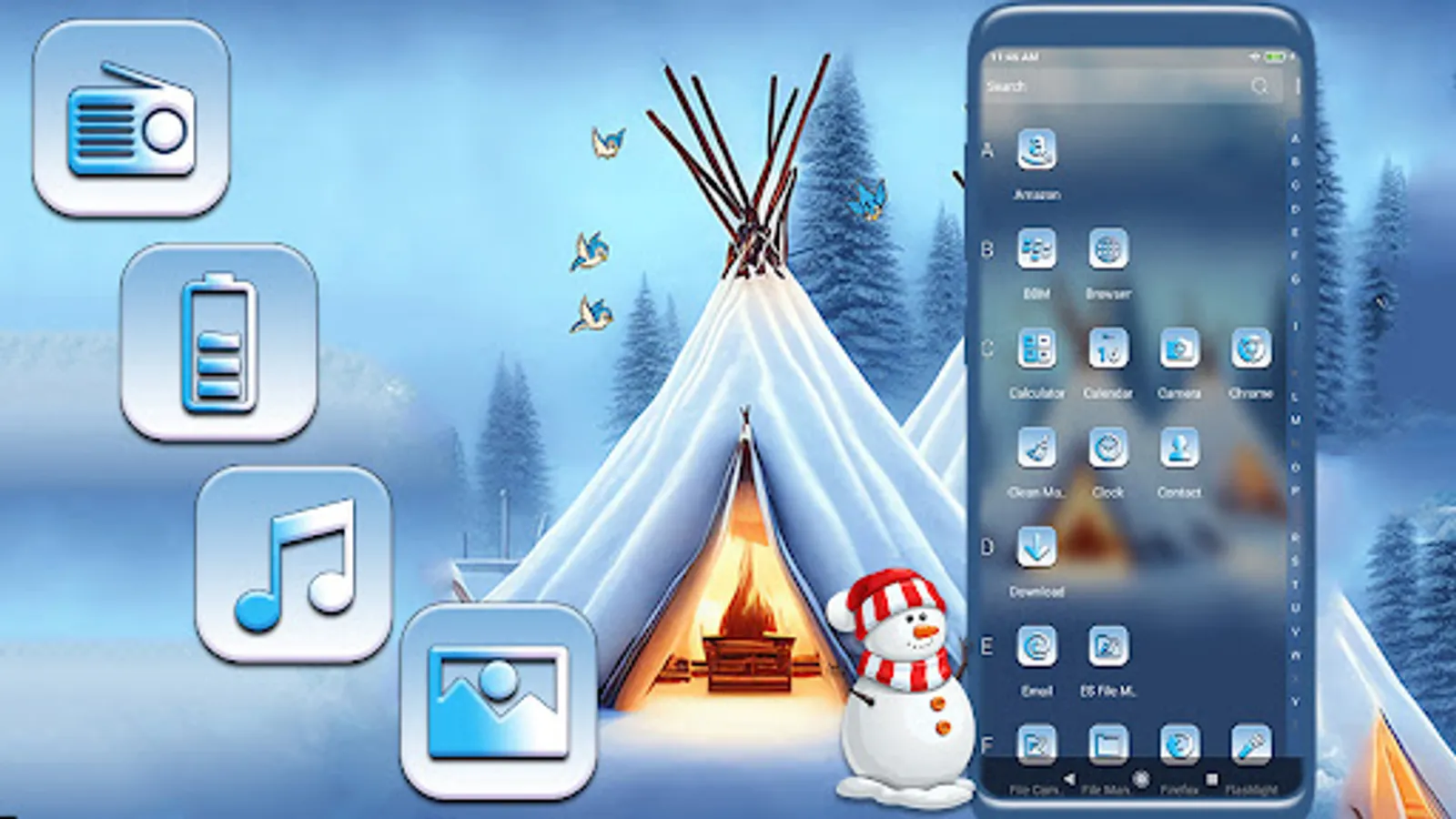 You can personalize your Android phone or tablet with our best theme Launcher, Winter Campfire Launcher Theme TODAY!