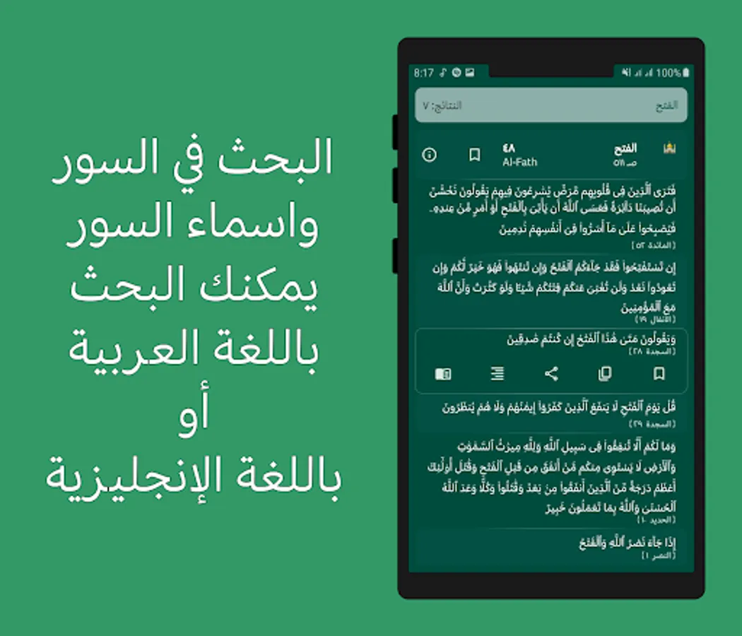 This copy contains the Noble Qur’an in a simplified form. It also contains a search for the Noble Qur’an in both Arabic and English (in the verses of the Qur’an and the surahs and their numbers). You can put them in your reference list, and a simple design rosary for you to praise.