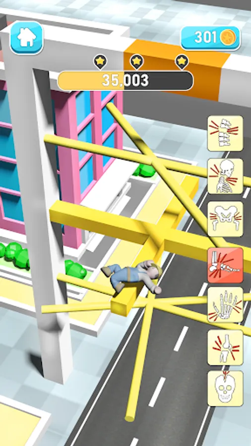 In Ragdoll Fall Break 3D you have been given a ragdoll which you can push to fall on the road or on ground from a height. It gives you a satisfactory Fall Break where you will let them fall as the ragdoll went on hitting itself on the obstacles, on different spikes and in front of cars as well.